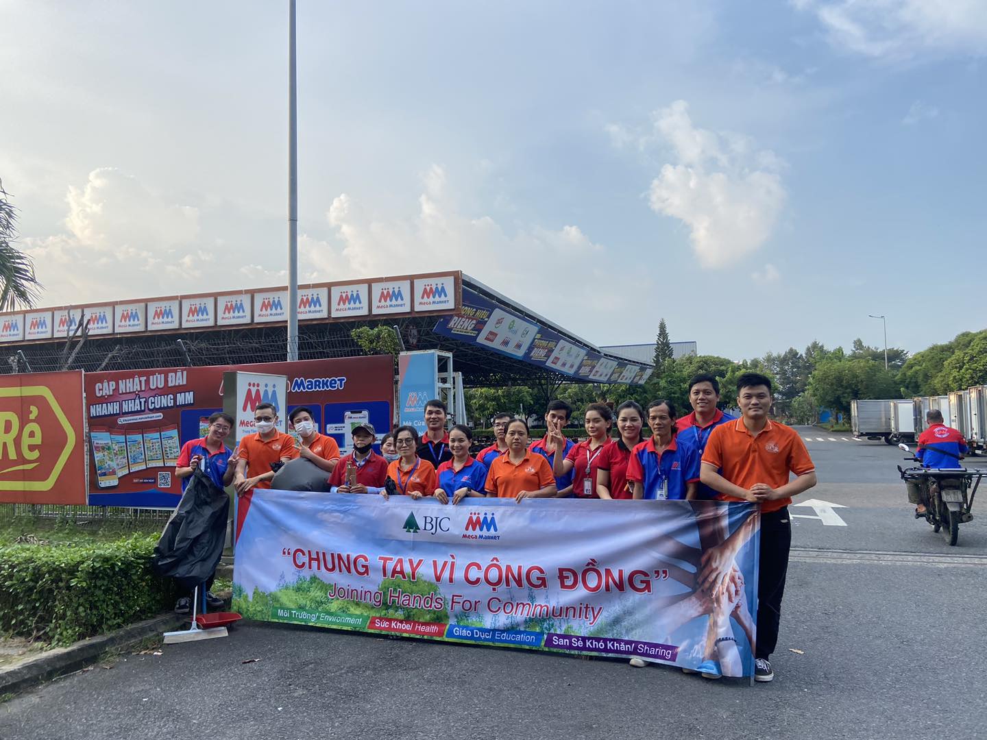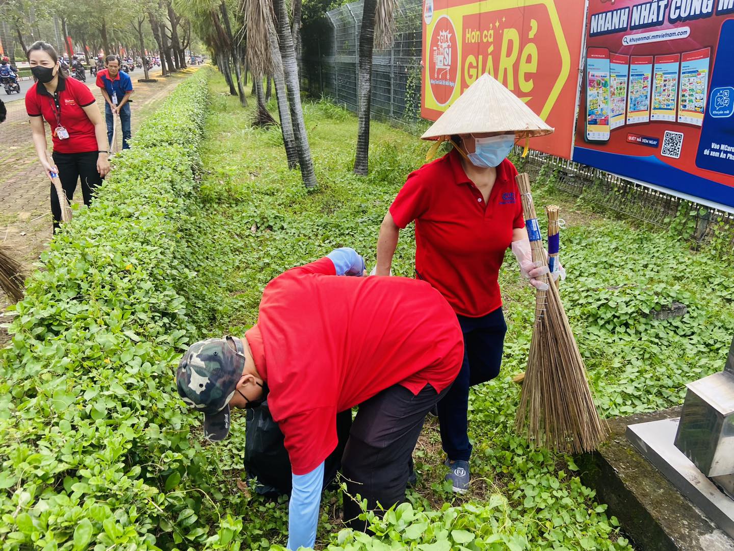 On September 30, 2025, a team of 10 employees from MM Mega Market Bien Hoa joined hands in a clean-up activity, collecting trash and refreshing the landscape in the surrounding areas of the center.