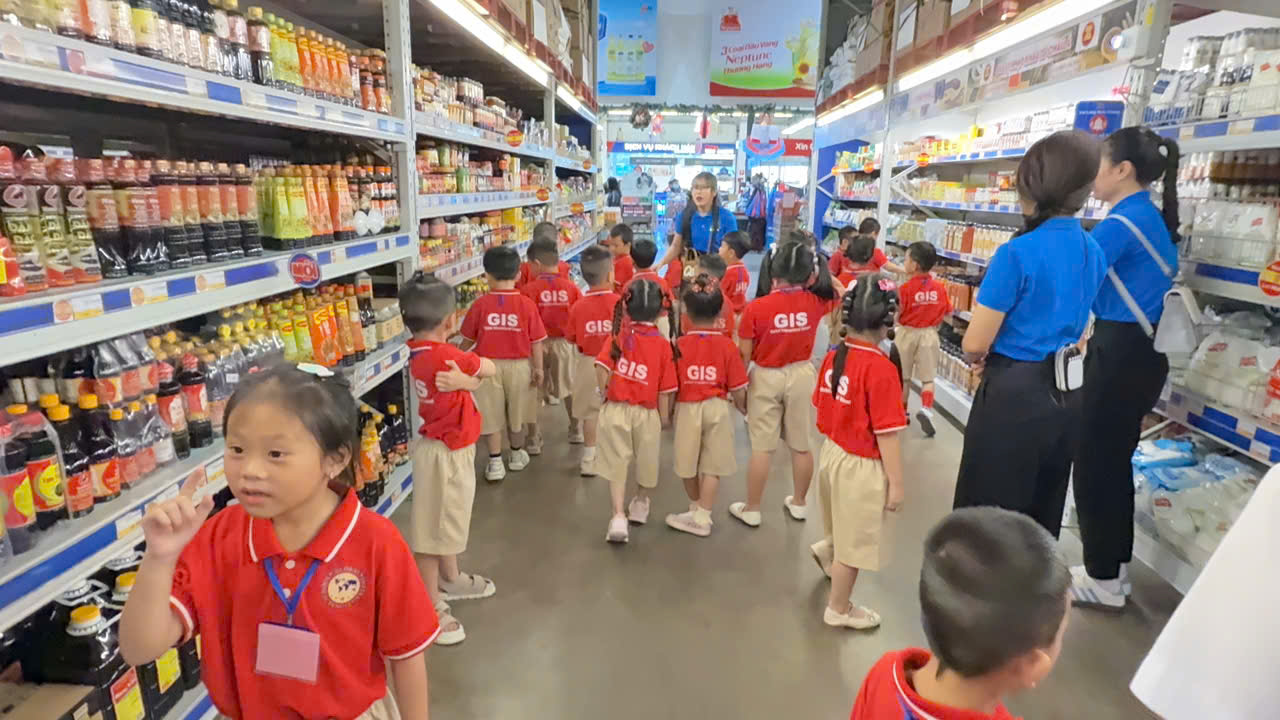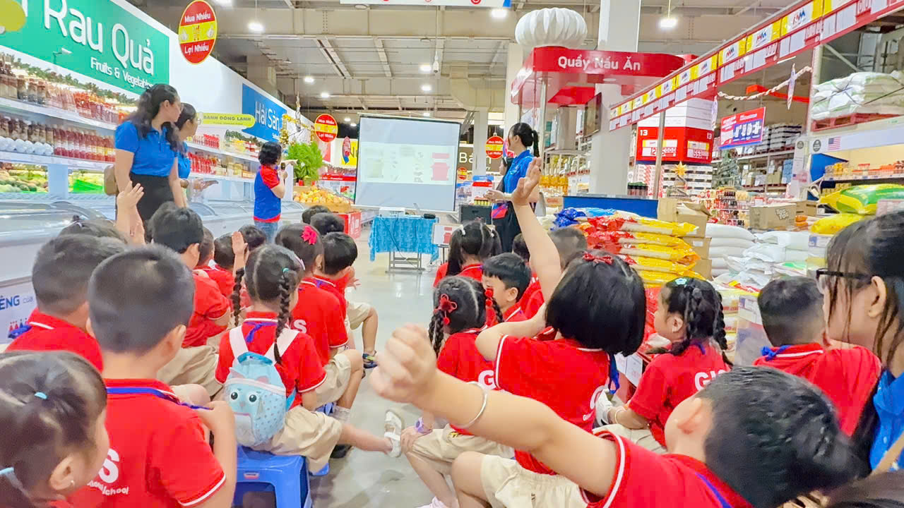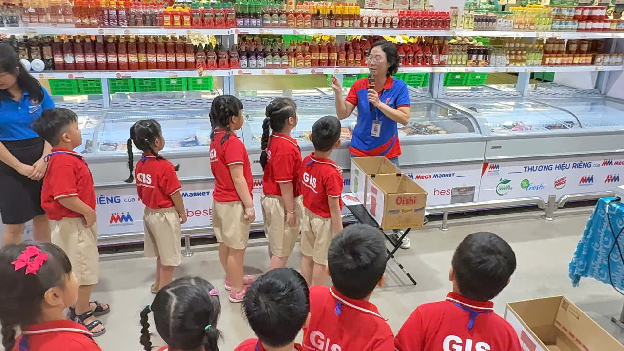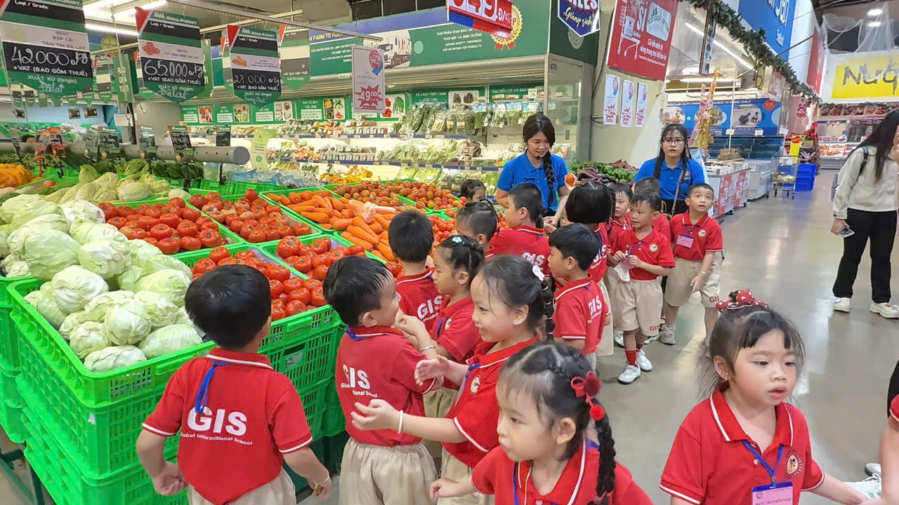 📅 On December 3, 2025, 242 students from GIS Kindergarten took part in a meaningful experiential program at MM Mega Market. During the visit, the children had the opportunity to explore the supermarket and learn about various product categories such as fruits, vegetables, and food items, while also being guided on how to properly sort waste.