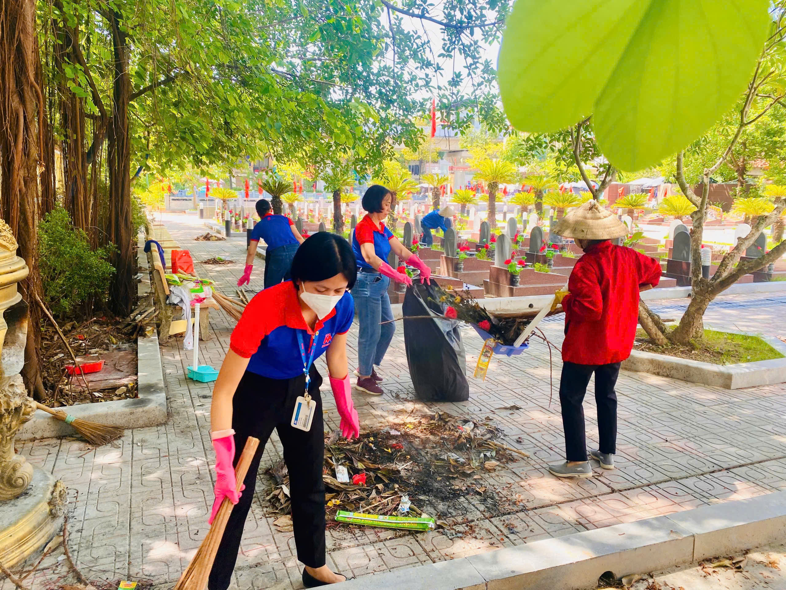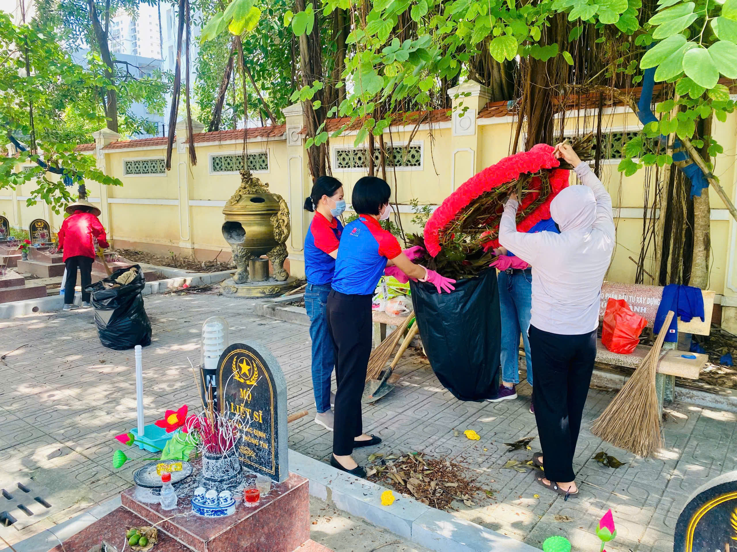 With enthusiasm and a positive spirit, the team members worked together to sweep, collect waste, and take care of greenery—helping to bring a clean, solemn, and meaningful space to the Memorial site.