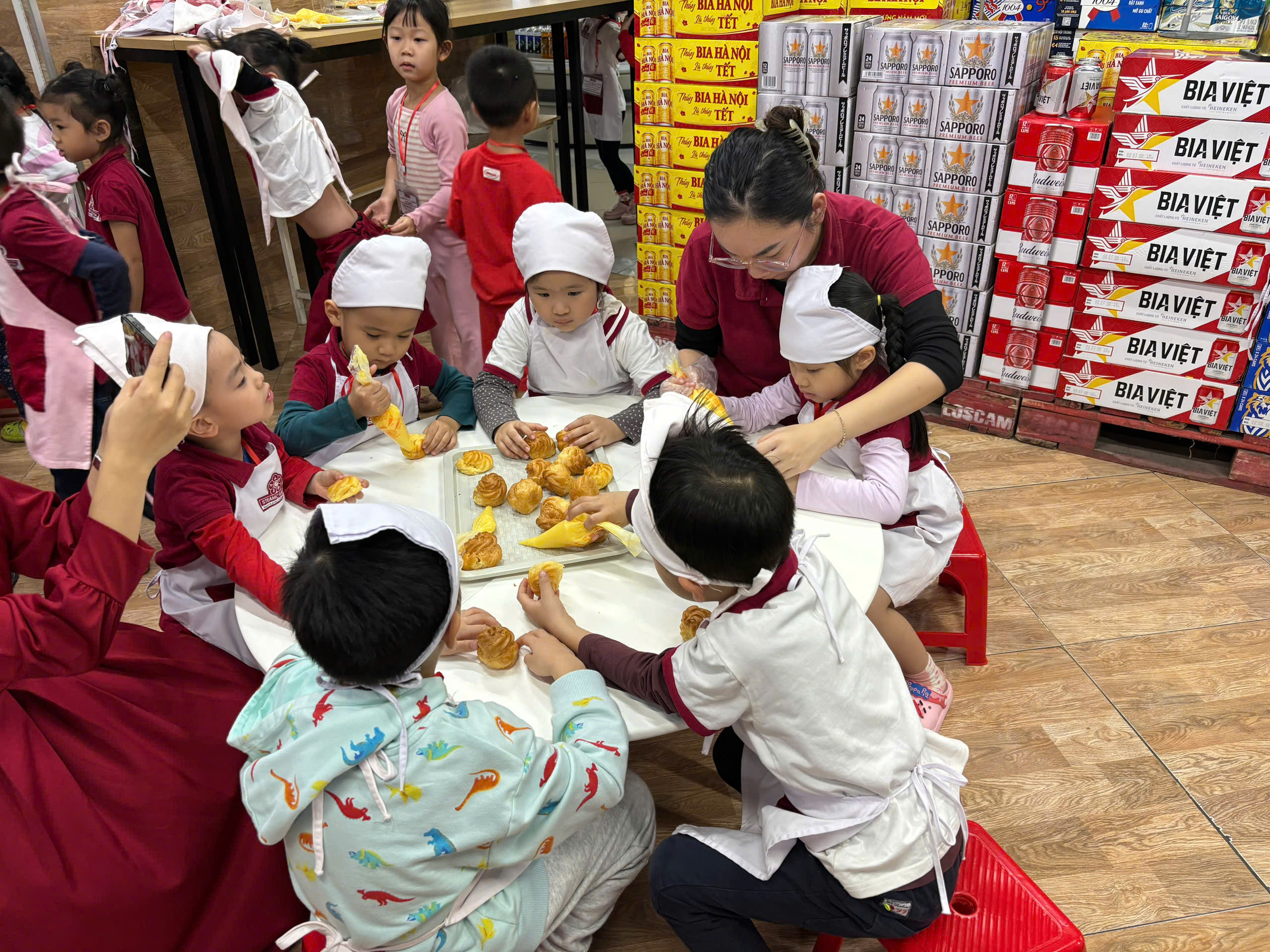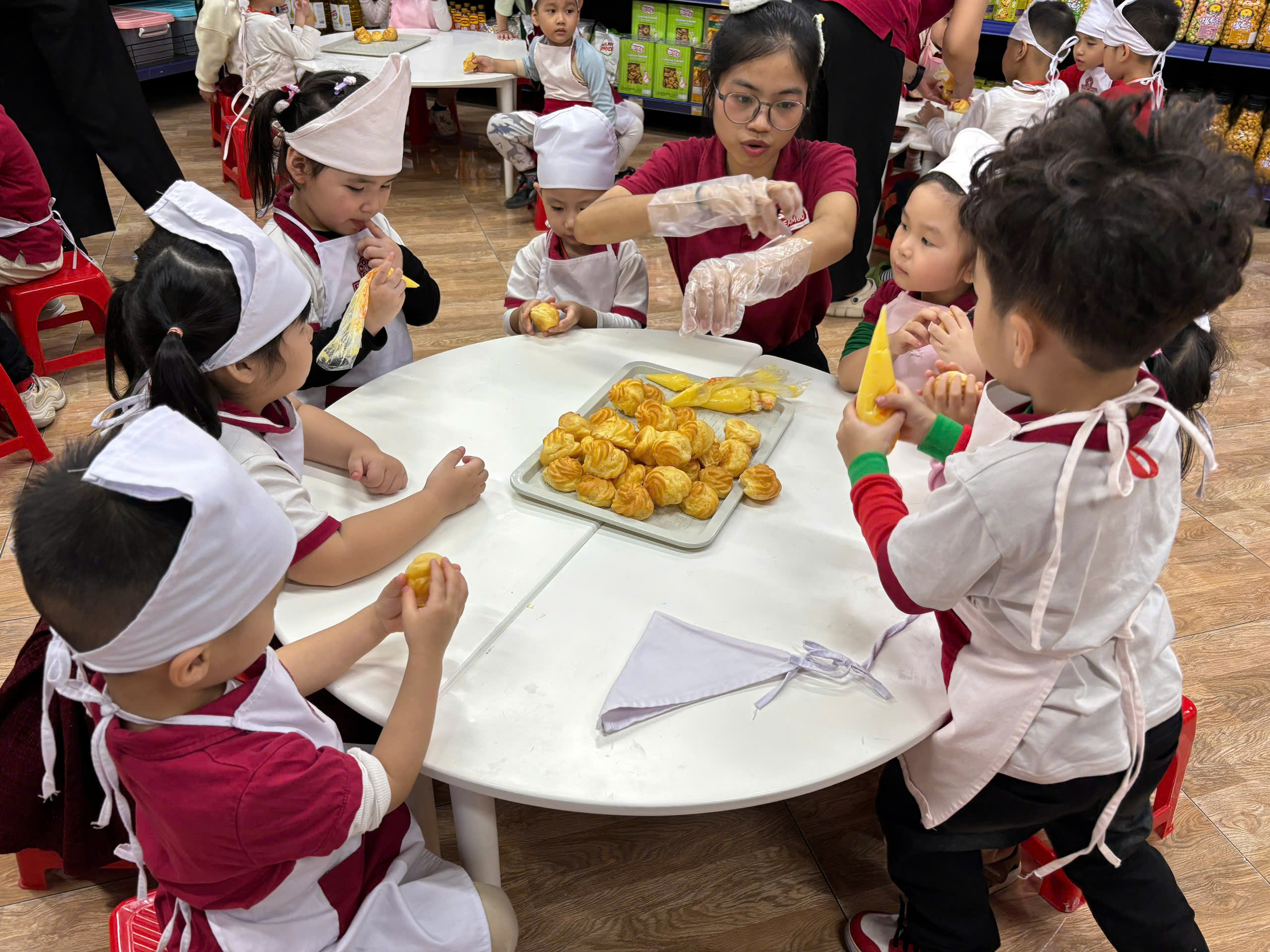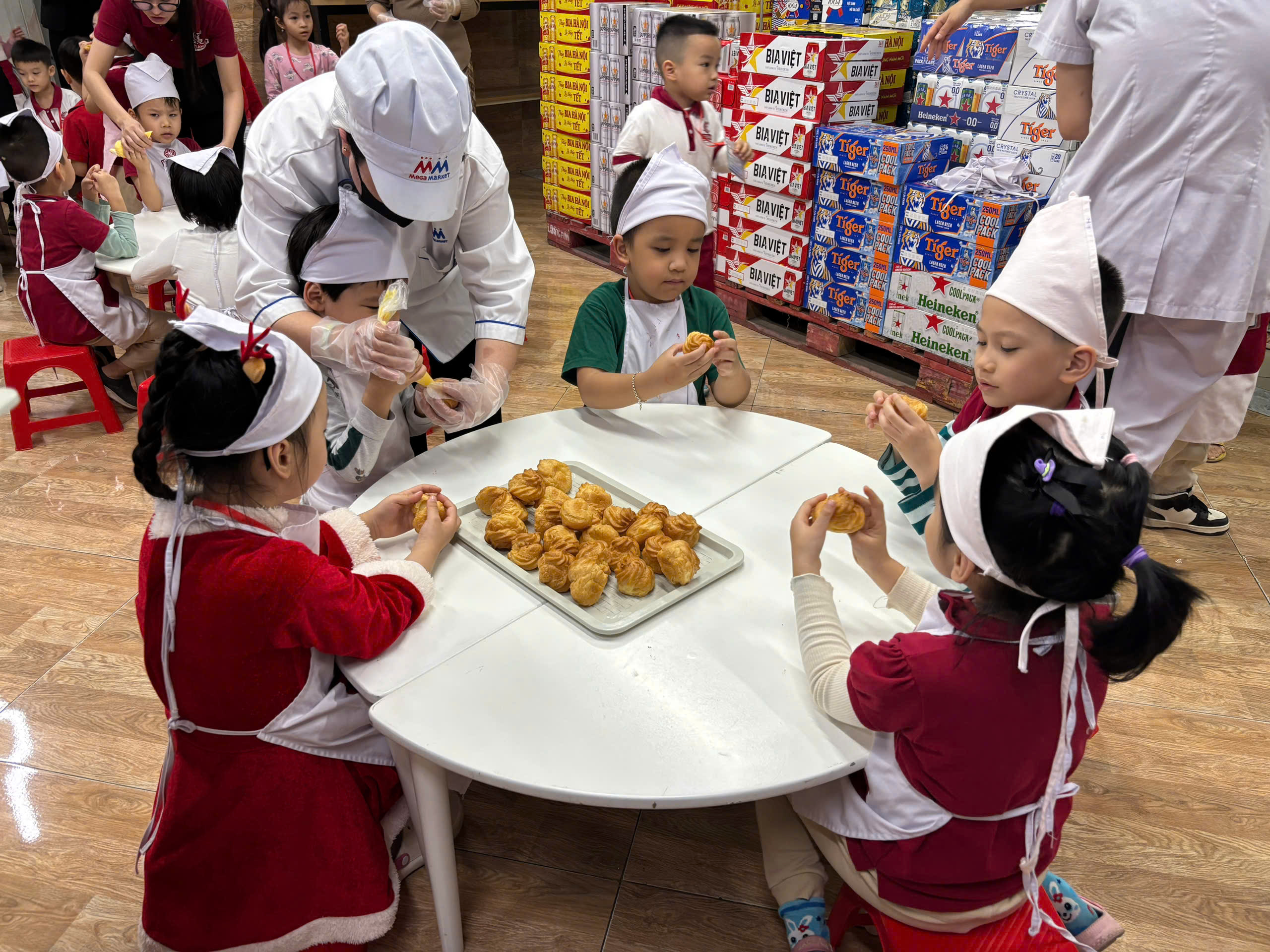 💚 With the dedicated support of MM Thanh Xuan’s employees, the children had the opportunity to decorate cream puffs themselves, learn about safe and nutritious food ingredients, and develop dexterity, creativity, and teamwork skills.
