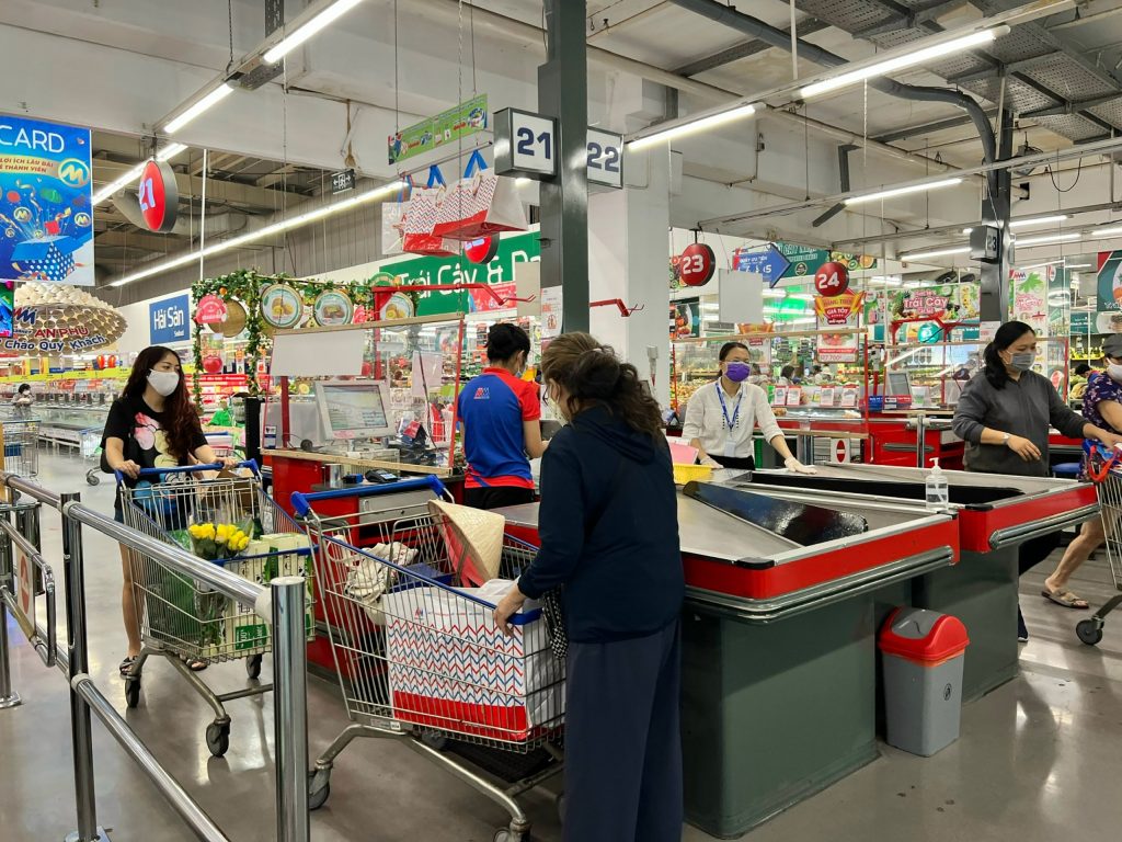 Khách hàng sử dụng túi MM tái sử dụng nhiều lần tại các quầy tính tiền trên toàn chuỗi.