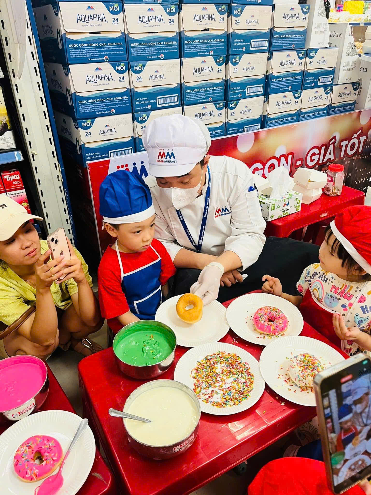Các bé đã được hóa thân thành những “thợ làm bánh nhí”, tự tay trang trí và hoàn thiện những chiếc bánh donut đáng yêu mang về làm quà. Không gian tại MM Mega Đà Nẵng trở nên vô cùng ấm cúng, nhộn nhịp và tràn ngập tiếng cười trong ngày cuối tuần ý nghĩa này.