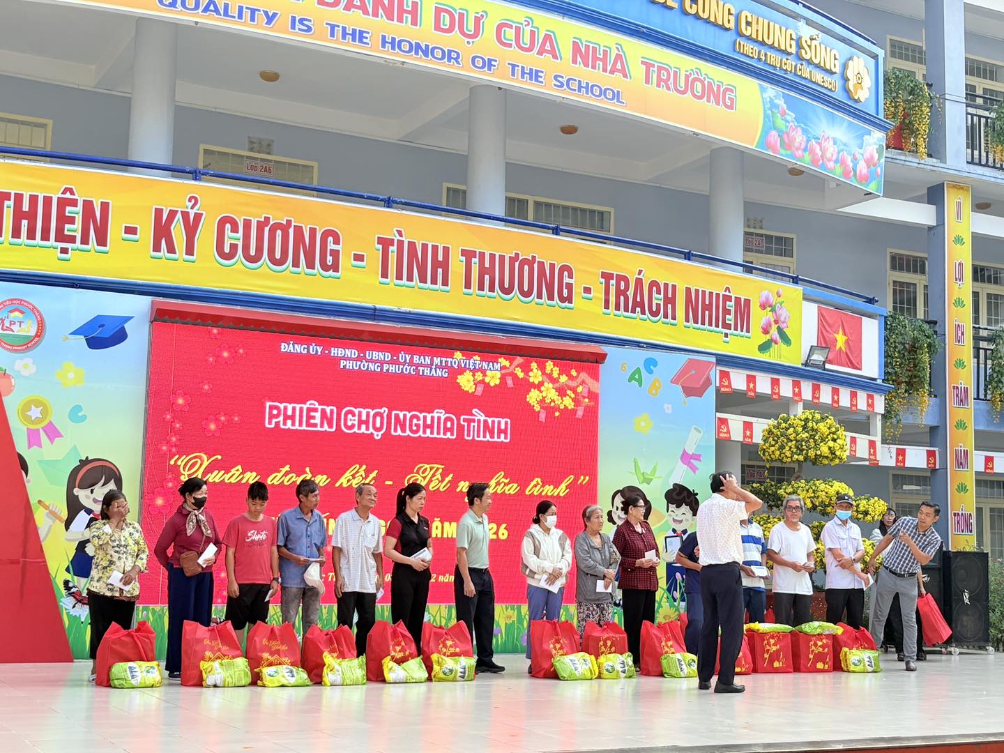 Chương trình được tổ chức vào lúc 7:30 sáng tại Trường Tiểu học Phước Thắng, mang đến không gian ấm áp, tràn đầy nghĩa tình và sự sẻ chia cho bà con địa phương trong dịp Tết đến Xuân về.